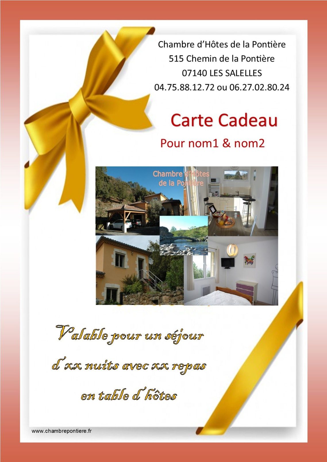 Offrez un séjour, pour une ou deux personnes, une ou plusieurs nuits avec ou sans repas..